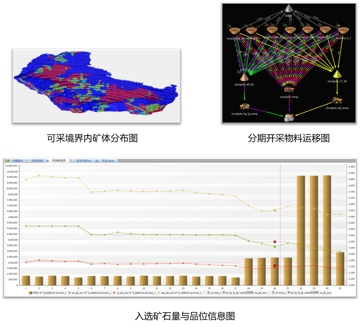 2、该矿属于多金属矿床,沿用原始定义金属价值“当量品位”作为矿山矿岩属性定义指标编排计划不能满足现场需求。为满足现场要求,在排产过程中贴合现场生产对矿岩物料进行的调整,最终实现了现场生产需求,。