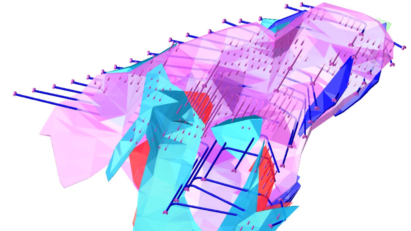 查个勒铅锌矿位于高海拔地区,采用传统生产工艺难以满足生产,并且存在严重的安全隐患,对生产职工的身体健康也有很大影响。因此矿山企业领导考虑采用自动化、机械化采矿技术,引进机械化自动化采掘设备。为匹配自动化机械化采矿设备,在生产之前就委托我司使用Surpac软件,对查个勒铅锌矿矿体建立三维模型,并进行里储量估算,供后续采矿设计与生产使用。在矿山三维模型建立成功的基础上进行了三维开拓设计,完成了沿脉巷道、穿脉巷道、斜坡道等三维设计。实现了采矿设计的三维可视化,为后续机械化自动化采掘生产打下基础。